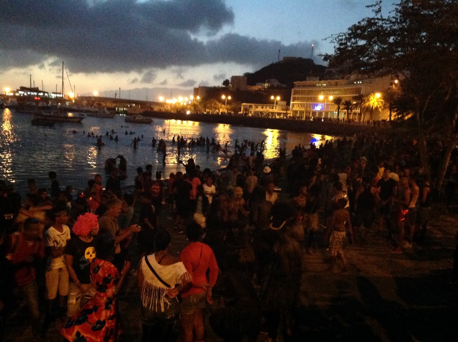 Drei Tage Karneval in Mindelo bedeutet ununterbrochen extrem laute Musik in der Stadt, die so laut bis zum Boot trägt, dass die Bässe und vor allen Dingen der Rhytmus der allgegenwärtigen Trommelmusik einem das Bauchfell erzittern lassen.